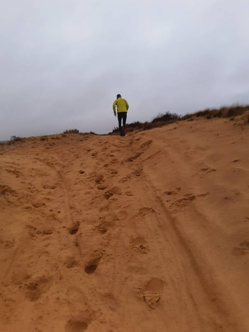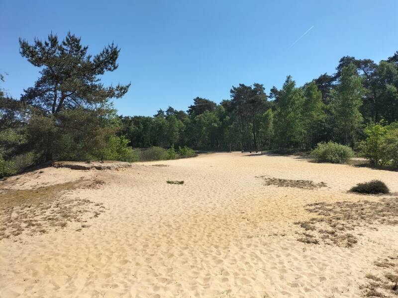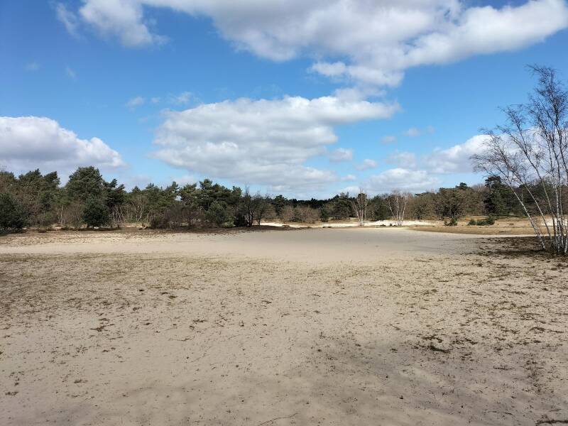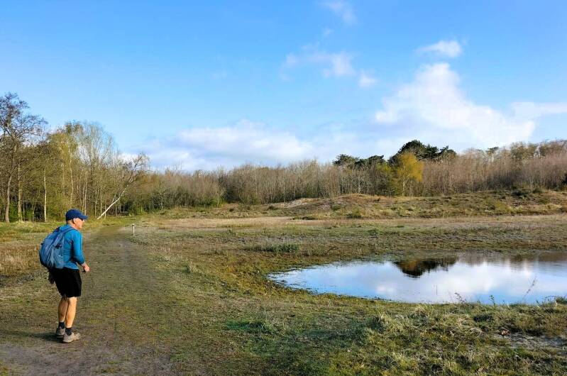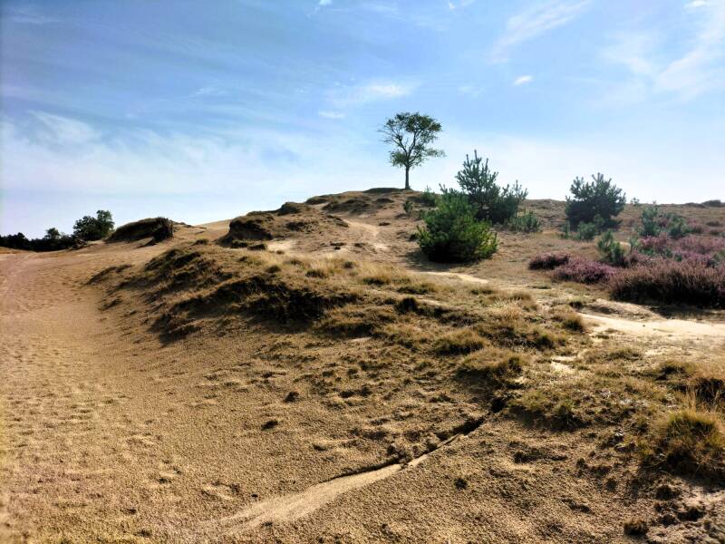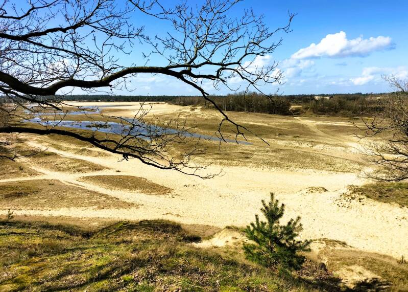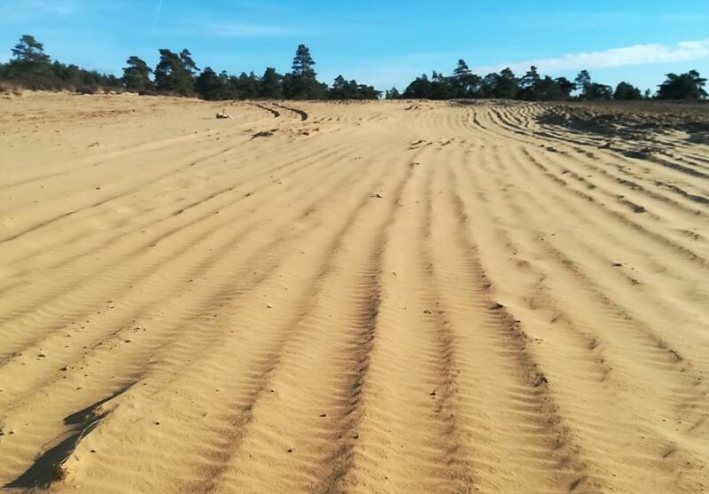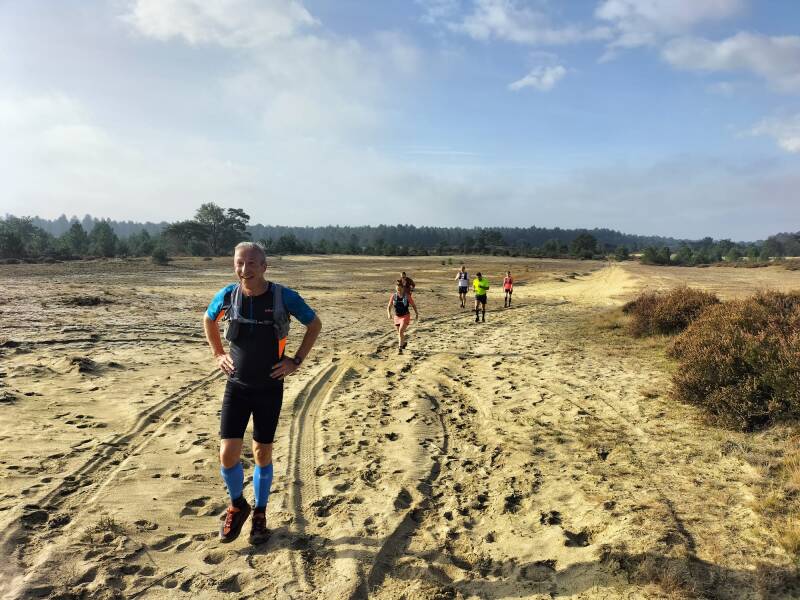 Ga je er lopen, dan vind je je spoor weer in singletracks, wortelpaadjes en verzand je in woestijnachtige vlaktes en kun je zomaar door een drooggevallen ven lopen.