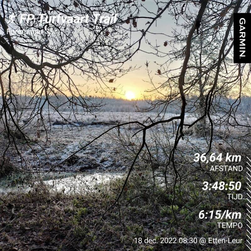 Zaterdag 20 december - mijn mes snijdt door de mist tussen Wouwse Plantage en Huijbergen en de temperatuur loopt terug van 7 naar 2 graden Celcius. Begin september liep ik mijn vorige trail voor en met Footprint, hoewel ik kilometers genoeg maakte op de paadjes, zij het in eigen tempo en op het moment dat het mij uitkwam. Voor Ivo had ik een 20km route aangeleverd en voor Tono een 13km. Tono liep al eerder voor voor ons, maar dan in zijn eigen vertrouwde Zeeuwse omgeving. Nu dus de 'Footprint -proef' over, voor hem, onbekende paadjes. Ruim 20 lopers volgden over de vele singletracks, wortelpaadjes en zandstroken en zagen dat het Grenspark behoorlijk ge-redecoreerd wordt momenteel. Ik mag daar niks meer over zeggen, dus ik zwijg en sluit de mid tempo groep op terwijl de zon zijn best blijft doen om het mistgordijn opzij te schuiven. Het is weer zo'n prachtige ochtend in het Grenspark waar we op onze manier, relaxed en kleinschalig en zonder toeters en bellen, genieten van elkaars gezelschap en de natuur.