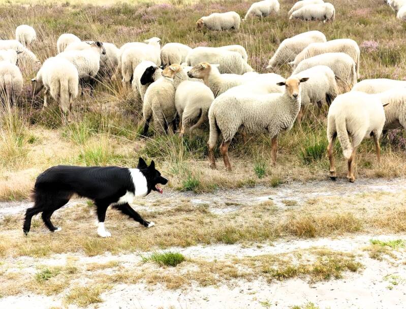 Woensdag 20 augustus. Nog eens de heide op, dit keer samen met Pol. En ook nu valt het op dat de heide dit jaar niet overal dezelfde diep-paarse kleur heeft. Ik kan niks anders bedenken dan dat het te maken heeft met het weer, (nat - droog - nat - zeer droog) zuurgraad van de bodem en verdringing door 't pijpestrootje (overmatig stikstof) Wat zoekwerk her en der bevestigt dat beeld grotendeels, maar het onregelmatige kleurbeeld heb ik zo nog niet eerder gezien. Maar vooruit ......... we komen om te wandelen en we genieten volop tijdens allerlei praatjes ook van de plaatjes en de vele afwisselende paadjes. De runderen bij Drielingvennen merken dat het water ver te zoeken is, de route 'Schaap' wordt druk bewandeld, het zand is mul spul en we zijn getuige van een actieve herdershond die zijn schaapjes scherp in de gaten houdt. Voordat we het weten vliegen vier uurkes struinen over de heide voorbij en ik presteer het om tegen het einde nog een paar paadjes van de route creatief te verleggen, zodat ik nog even naar de tekentafel terug moet. Geslaagde ochtend, dat wel en leuk om dit weer eens met een wandelmaatje te kunnen delen.
