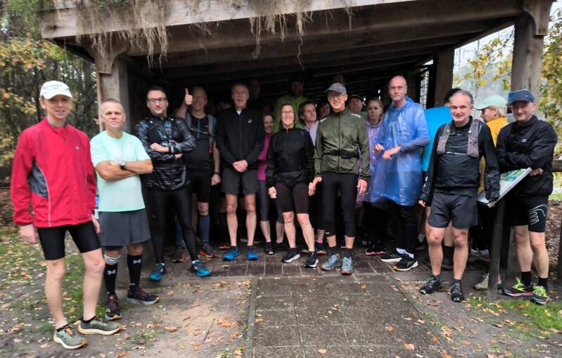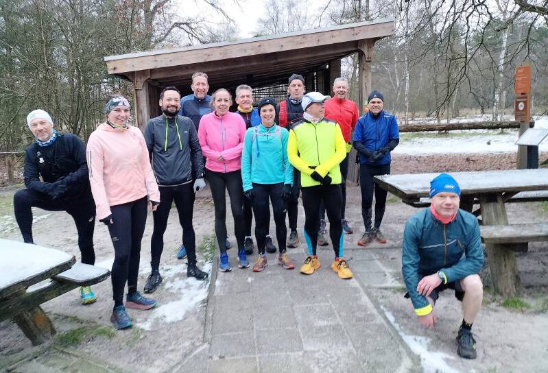 Zondag 14 december hadden we de laatste training van het jaar met mijn Running Team waar ik inmiddels 12 jaar aan verbonden ben. Nu eens geen rondjes op de baan of asfaltstampen, maar grotendeels op de paadjes van natuurgebied De Pannenhoef. Vijftien lopers wandelden, trailden drie verschillende rondjes met daarna een waardige afsluiting met warme choco, slagroom en oliebollen. We plakken er in 26 gewoon weer een jaartje aan vast.