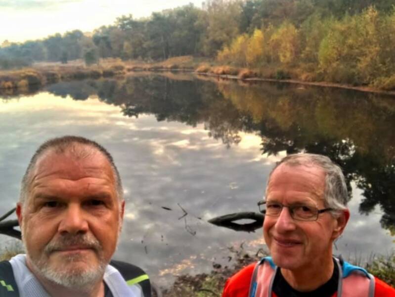 Een beetje mistroostig allemaal voor wat betreft het weer, zieke mensen, geblesseerden en de gedachte dat het allemaal erg lang duurt voordat we weer eens wat samen kunnen ondernemen met een groepje groter dan 4 lopers. Toch in deze week weer twee keer in het Grenspark geweest, 1 keer alleen en 1 keer, weer, met Tonny en Janine. In de herfst zijn de kleuren prachtig en zijn de vennen weer wat beter gevuld. Struinen in Meiduinen levert soms nog wat verwarring op, maar het is een mooi deelgebiedje met een paar uitdagende zandstroken en smalle paadjes, afgewisseld met twee mooie waterpartijen. Deze run ging van Kortenhoeff naar Kleine Meer, Zwaluwmoer, Meiduinen en weer terug via Kleine Meer en Staartse Duinen. Weer goed voor elk 15 mooie km.