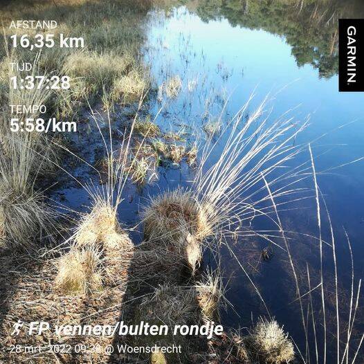 Die 95% onverhard bleek nog geen 75% en daarvan was 1,5km op de heen- en terugweg hetzelfde.Jammer???? Nou nee, want het gaf inspiratie voor twee trails voor Footprint en het leverde ook wat plaatjes rond het Stappersven op.